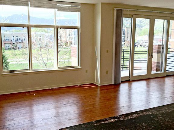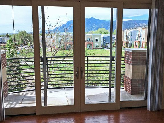 MOVE IN READY. Desirable 2 Story Corner Unit w. all primary spaces on 1 level. Glass on 3 sides. Beautiful Flatirons views; Large private deck. Private Entry; 1 Car attached garage. High quality, Euro-designer finishes w. slab granite; hardwood floors; SS Appliances; A/C. This unique floor plan features a large space on the Entry level for an Office/AV/Family Room. Cafes; Hiking; Biking; and Dog Park nearby. 10 minutes from Pearl St; Google.