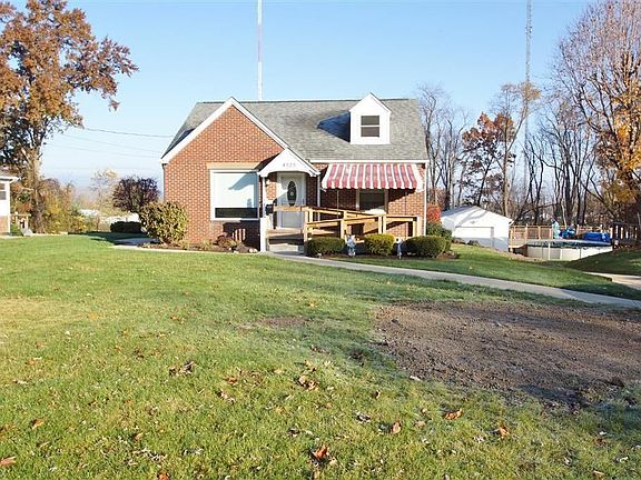 1,818 sf brick and vinyl bungalow with a walk-out basement. Home features four bedrooms and 2 full baths. Kitchen appliances stay. Spacious dining room and family room off kitchen has built-in glass cabinets. Three of the four bedrooms are on the first floor. Master bedroom has a walk-in closet, cedar closet and a master bathroom. Large bedroom or bonus room on the second floor. Lower level recreation room with wood and ceramic flooring. Front and side entrances have newer vinyl railing. Newer concrete front and side door sidewalks. In ground swimming pool surrounded by vinyl fencing and powered by solar panels that are located on the huge, back yard shed. Over sized two-car attached garage with all ceramic walls and a Resnor heater and an over sized one-car detached garage. This home also features a large basement safe, water softener, an alarm system, newer windows and newer exterior doors. Seller will assist with opening of pool and remove wheelchair ramp if buyer desires.
