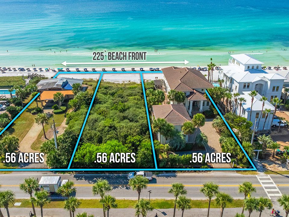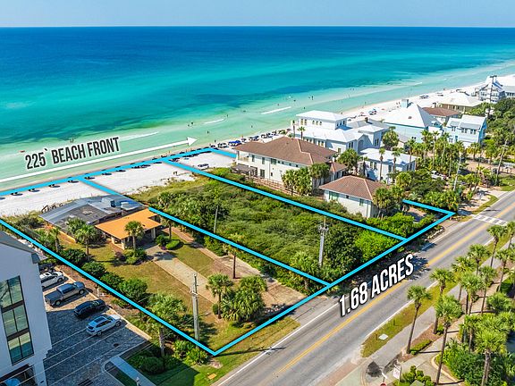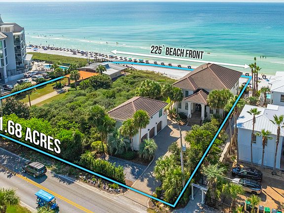 A World-Class Prime Opportunity to purchase 225 Feet of Gulf Front Property! Introducing one of the most extraordinary estates ever offered for sale along Scenic Highway 30A, spanning an irreplaceable 225 feet of pristine Gulf Frontage. This remarkable assemblage combines three contiguous 75-foot parcels into a single private beachfront estate. This is a once-in-a-lifetime opportunity along Scenic Hwy 30A. The property includes a luxurious Gulf-front residence with a carriage house, and two adjoining Gulf-front lots. The Gulf-front residence has multiple years of proven vacation rental income up into the $700's Together, these parcels create a canvas for your vision with sweeping Gulf views, gorgeous dunes, and sugar-white sands with private beach to the mean high water line. This is a rare coastal property minutes from Seaside, Alys Beach, and Rosemary Beach the ultimate opportunity to own a private beachfront sanctuary on 30A. Situated in a premier location at Hwy 393 & Scenic Hwy 30A, across from Gulf Place, one of the most convenient and relaxing areas along 30A. The immediate area includes restaurants such as The Vue, Shunk Gulley, The Perfect Pig, Pizza By The Sea, Renaissance French Restaurant, and more, along with a day spa, and services.