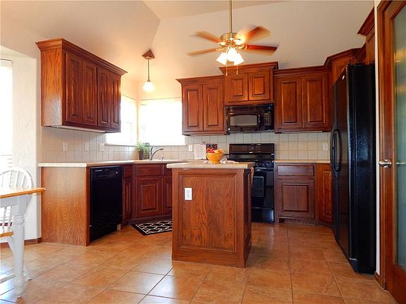 Like new, very well cared for home offers 3 spacious bedrooms, 2 full baths and high ceilings throughout with a great open floor plan. Interior has a fresh coat of paint. Home offers a large open kitchen with beautiful wood work and quaint kitchen island ideal for chefs! Newer, hail resistant 30yr shingle adds extra protection for your home and should help offset your homeowners insurance premium cost! New storm cellar and storage building in back with wood privacy fence. Hard to find this many extras in this location at this price. Take a quick peak today!