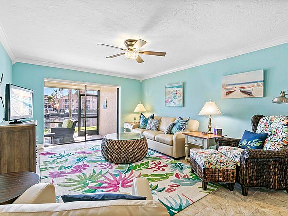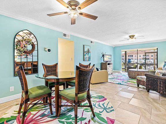 This beautiful move-in-ready gulf access condo is located on the desirable Rubicon Canal. The 2-bedroom 2- bathroom first floor unit has been completely remodeled with zero expenses spared. The work has been done for you and features a spacious kitchen with upgraded white wood shaker cabinetry, stunning quartz counter tops with tile back splash, and stainless-steel appliances. Crown molding throughout the unit and wood-like flooring throughout the main living area and one bedroom, tile in bathrooms and carpet in the bedroom; there is also fantastic space that can be used for an office/storage area! The master bathroom features an elegant walk in shower with new tile and river rock flooring. Both the living room and the master suite lead to the spacious tiled lanai with sliding glass doors that disappear into the walls for that open floor plan with great water views. Experience paradise in this amazing condo!