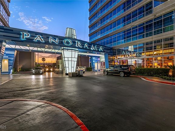 This Panorama Towers condo will be sure to impress you! Elegant unit features an open and airy floorplan with large balcony and Strip views from living room and primary bedroom. The primary en suite is huge and features a soaking tub with separate shower. Includes black granite counters, cherry cabinets, and marble floors in the wet areas. As a resident of Panorama Towers, you'll have access to unparalleled amenities, including security, valet parking, concierge services, and limo service! Take a dip in the heated pool and spa, train in the fitness center, or host a game night with friends in the game room. Don't miss your chance to experience luxury living!