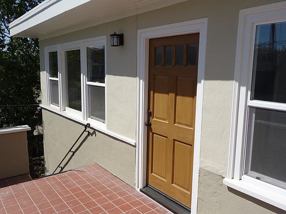 Sunny apartment available in a lovely 4-plex set in quiet and cheerful upper Glenview. Just a short walk to shops, cafes, park trails, and AC Transit. Great views and a private patio (which has been updated since the photos were taken). Also included is a large and secure 1 car garage that can be used as a workshop and storage. Cats and small to medium dogs okay. Shared coin-op laundry on site. Owner pays for trash and water