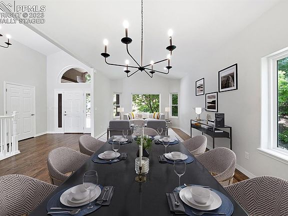 Rare opportunity to own a Ranch with a walkout on the secluded and private street of Iron Ore Lane. This beautiful home sits on a lush park like cul-de-sac w/ breathtaking city views, mature landscaping and a double lot totaling .87 of an acre! You can unpack and just start living because this home has been completely updated with gorgeous and current finishes. Gleaming wood floors have all just been refinished, freshly painted throughout, all new interior white doors with brushed nickel hardware, stunning new light fixtures throughout, brand new carpet, new bathrooms featuring timeless style and high end quality. The living room / dining room combo is enormous with vaulted ceiling and provides an incredible Open & Bright first impression as you step inside. The spacious kitchen will please the pickiest chef with stainless appliances, granite countertops, loads of cabinets, breakfast bar that could seat 6 comfortably and a kitchen nook with lots of windows that overlooks the gorgeous park like setting. The family room features a stacked stone gas fireplace and a walk out to the expansive deck featuring a gas firepit, outdoor heaters and a spiral staircase that leads to the hot tub! The main level primary bedroom was updated to absolute perfection with new carpets, Carrara grey and white bathroom with tiled shower, oversized tub a huge walk in closet! The lower level has that WOW factor featuring custom built ins, a wet bar with beverage fridge, gas fireplace, a walk out to the patio and hot tub area, three secondary bedrooms, a large full bath and storage area. Imagine your own private secluded sanctuary that is still very convenient to hiking/biking trails, parks, shopping, restaurants, schools, The Broadmoor Hotel, Ft Carson and only 20 minutes to the Colorado Springs Airport. * Please Note * Adjoining Lots 1 & 5 are being combined to total .87 acre lot. Taxes will change once merged.