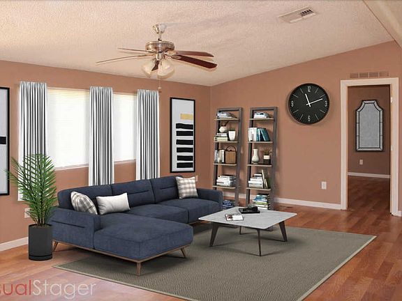 Vaulted ceilings give a large open feel. Split floor plan with all 3 bedrooms having their own walk in closets. Laundry room off the kitchen. New roof and flooring in December. Freshly painted interior and exterior. Skylight in the kitchen gives off plenty of natural day during the day. Attached workshop area with electricity in the backyard plus detached shed for extra storage. Enjoy the shaded backyard during the warm summer days. No HOA. Less than a half mile to Mountain Valley Park and Mountain View Elementary School.