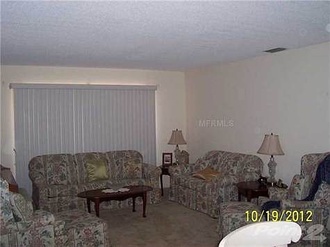 This Evora model is ready to welcome its new owners. It offers over 1900 square feet under air, a screened-in lanai under roof with greenbelt views and lots of privacy. There is a large courtyard on the side of the villa with glass sliding doors that gives entrances into both the master bedroom and the guest bedroom. There is a formal living/dining room, and a third bedroom in the front of the villa. For the sport minded there is a large family room with walls that will handle the largest of today's style of televisions. There is an eat-in-kitchen that has a pass through to the family room to feed the hungry when watching their favorite TV programs. There is an inside utility room with washer, dryer and wash tub, plus extra storage that enters out to the 2 car garage which is a must have in Florida. The roof was replaced in 2005 and the AC system was replaced in 2007. PLUS, the seller will provide the new owner with a one year home warranty. This villa is within walking distance to the community pool, and only a few minutes away from great shopping and some nice restaurants.