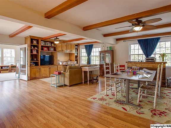 Monte Sano Living at its best! 3 car garage, geo thermal Heating/Cooling unit, home sits on four lots for a total of just under an acre with stream and tons of flat play space, 3100 SF home with some beamed ceilings and great family living spaces. Kitchen and baths have been updated nicely and the playroom downstairs can be a bedroom if needed with its own separate entrance. The circular driveway is handy for guests and easy access to the house. This home is a must see and very comfortable and move in condition in a great location on Monte Sano Mtn. Backyard storage building remains too!