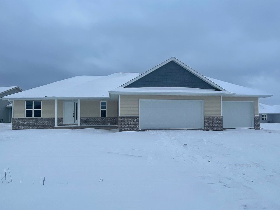 New construction 1,476sf ranch in the Village of Howard! Arrive to the lrg covered frnt porch w/porch posts. Open concept/split bdrm floor plan w/3 bdrms & 2 full baths. Walk into the foyer leading to the living rm w/cathedral ceilings. Kitchen features custom maple cabinets, built-in pantry, island w/snack ledge, stainless steel dishwasher & microwave. Main bath features dbl sinks. Master bdrm w/step tray ceiling features lrg walk-in closet & private full bath w/a walk-in shower. Convenient 1st-flr laundry rm. Attached 3-stall garage w/garage entry featuring bench w/hooks. Full bsmnt stubbed for future bath. Exterior w/brick per plan, vinyl siding w/horizontal siding on the porch & front bdrm wall & shakes in the peak. Virtual staging in photos.