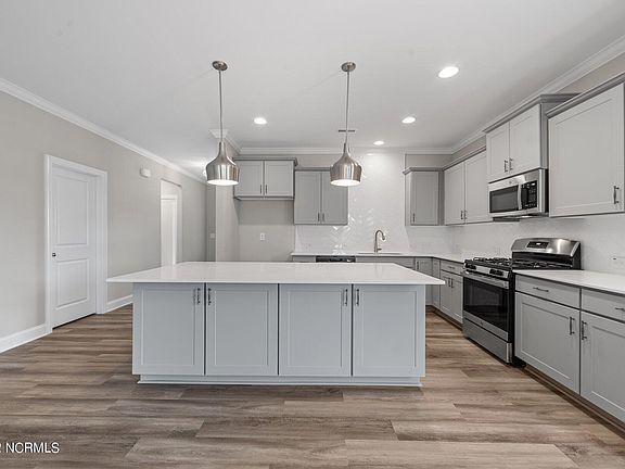 Ranch w/2CarGarage! 7'' WidePlank Waterproof LVP & Crwn Thru MainLvng! Kit: ''Pebble'' Paintd Cabs, ''MiamiWhite'' Quartz, 3x12 WhiteHerringbone Tile Bcksplsh, SingleBowl SS Sink w/PullOutFaucet, CenterIsland w/Storage on BackSide & DesignerPendantLghts, Recessed Lights, HugeWlkInPntry & SS Appls Incl GasStove! FrnchDoor off Kit to Sep GrllngPatio! Mstr: DsgnrCeilngFan, TripleWndw & WIC! MstrBth: PrivH2OClst, TileFlr, WhitePaintd DualVanity w/''GreyExpo'' Quartz, TileSrrnd WlkInShwr w/Trnsm, ShmpooNiche & Bnch! FamRm: GasLog FP, RcssdLghts, DsgnrCeilngFan &FrnchDoor to CvrdPorch!