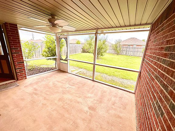 Features include a screened in porch, storm shelter in garage, garage laundry sink, epoxied garage floor, built in garage cabinets, jetted tub, glass storm door, and tile backsplashes throughout kitchen. 2in custom blinds on all windows. Kitchen, laundry, baths, foyer and hallways feature ceramic floors. Upper crown molding in living room. Full security system with 2 control panels. Attic storage above garage. Small shed & 6 ft privacy fencing in backyard. Located close to Tinker and OK Heart Hospital. At end of quiet cul-de-sac street.