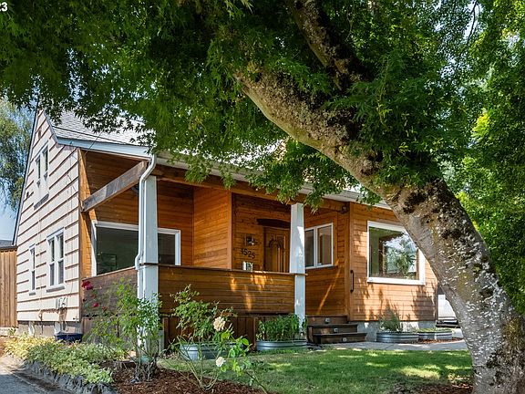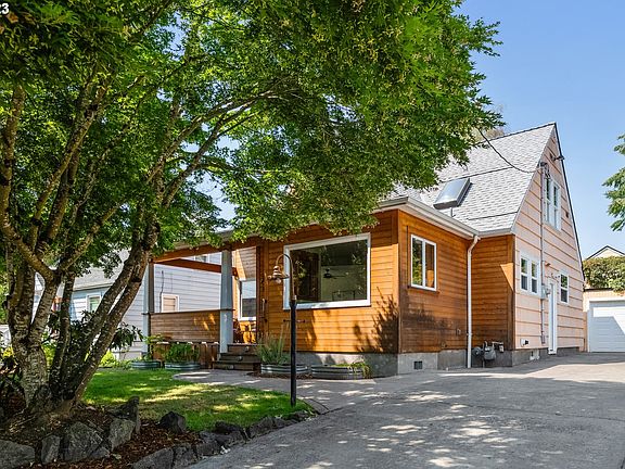 Everything you need in your new home is here! Step into this light-filled dreamboat with hardwood floors, formal living room with fireplace, spacious dining room with picture window, and remodeled kitchen and bathrooms. Plus, heated floors in the kitchen and main floor full bath. The main level boasts two bedrooms, and one and a half baths. Head upstairs to the primary suite featuring a large walk in closet and full bath with clawfoot tub. Clean open basement with extra ceiling height and side entrance offers great bonus space and ADU potential. In the heat of the summer or the cool of the winter, enjoy your covered front porch for stargazing or remote working outdoors! Garden out back, tinker in your detached garage, or entertain friends and family under your covered patio or rooftop deck, all with the makings for an outdoor kitchen. With a 93 Walk Score and 94 Bike Score, get around the city with ease! [Home Energy Score = 5. HES Report at https://rpt.greenbuildingregistry.com/hes/OR10219239]