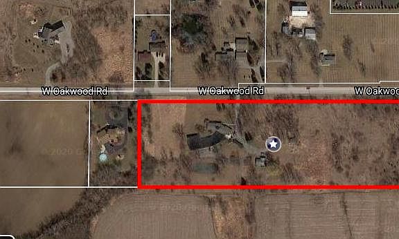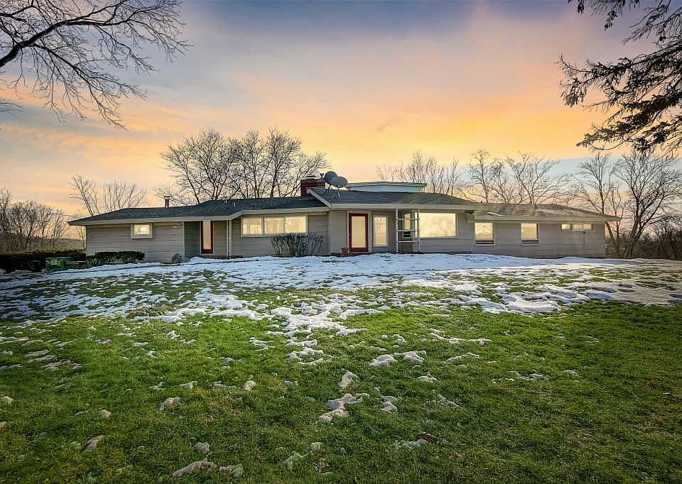 One of a kind, sprawling mid-century ranch home & guest house set on over 9 acres. Opportunity to shine up the existing buildings, or build new. Potential to divide the lot. Main home features spacious kitchen with NFP, living room with picture windows overlooking farmland, 3 bedrooms and office. Amazing lower level rec room with sunken bar and access to heated indoor pool. Attached 16 car garage for all of your storage and workshop needs. Located near Oakwood Golf Course, the lot has a country feel and is less than 10 minutes drive to the freeway.