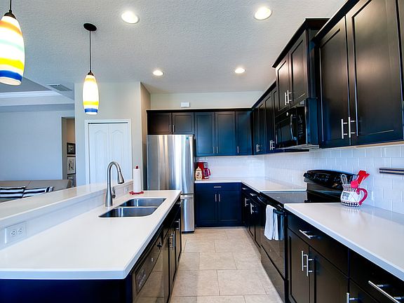 UPGRADED HOME WITH LAKE VIEWS! This 2014 built residence was constructed by Neal Communities on a larger lot. It offers nearly $20,000 in custom upgrades including ceramic tiled flooring in Running Bond pattern, Sonoma Maple cabinetry in Espresso, Moen fixtures, Schlage lever door hardware, added outlets and pre-wired for extra ceiling fans, moth grey interior paint, 9Ft 4In ceiling heights, recessed and designer lighting. A screened and covered front porch plus an impact glass front door presents the foyer. The main living area boasts a tray ceiling and crown moldings. Triple sliding glass doors overlook the lake views beyond the screened lanai. An open kitchen features a Corian breakfast bar and counter tops, subway pattern tiled backsplash, task lighting, upgraded cabinetry with crown molding and a stepped design. Plus there is a pantry and sleek black appliances. An adjacent breakfast nook looks out over the lake views. The spacious Master Bedroom has water vistas and double walk-in closets. A personal bath includes quality cabinetry, solid surfaces, a water closet and a Romanesque shower with wall tiles in Ascoli Cream. The split plan layout also has two additional bedrooms and a guest bathroom with a cast iron tub, upgraded cabinets, and solid surfaces. Neatly landscaped on a premium lakefront lot with an extended 2-car garage with exterior coach lighting. Additional features include window screens, hurricane shutters and irrigation system. Nestled gracefully in Sugar Mill Lakes, known as an ideal neighborhood for commuting to work or play. The convenient location is near I75 and I275; minutes from the Ellenton Outlet Mall, popular dining spots, entertainment venues, and close to St. Pete, Tampa, Bradenton and south to Sarasota. It has no CDD fees and low HOA fees that include management and maintenance of the park, playground and tennis courts for its residents.