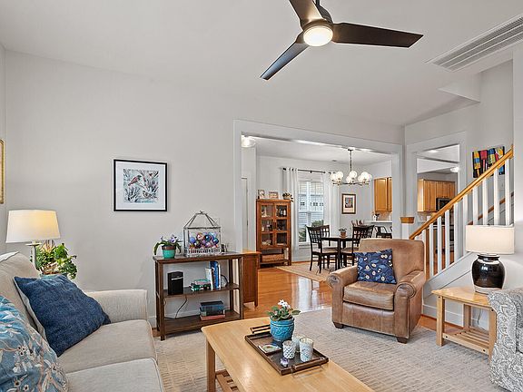 Come fall in love with this charming home on a tree-lined street in highly desirable Bedford at Falls River! End lot with private, beautifully landscaped and fenced backyard. Welcoming front porch. First floor features abundant natural light, hardwood floors and fabulous flow between living and dining rooms. Well-appointed kitchen includes granite countertops and stainless steel appliances. Primary suite on the first floor boasts double vanities and walk-in closet. Three additional bedrooms upstairs offer lots of options for sleep, study and play. Amazing location and an amenity rich community.