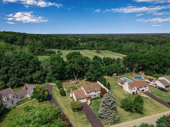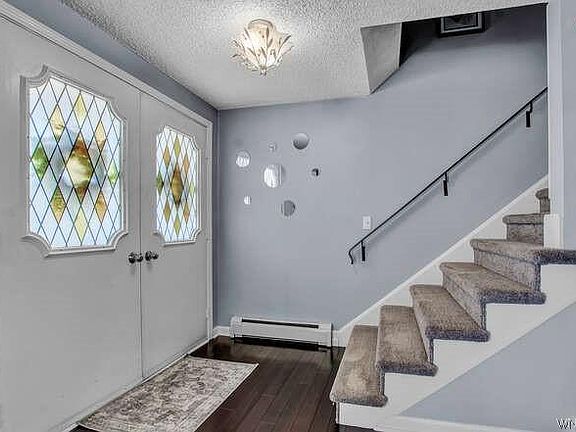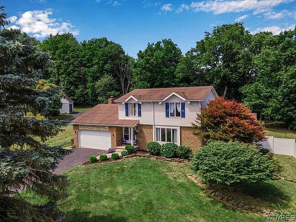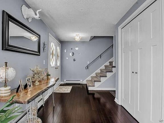 Stunning vinyl & brick 3 bedroom 2 & 1/2 bath colonial on the Escarpment is full of gorgeous updates! Completely renovated kitchen 2020 with Quartz counters and white cabinets opened up to formal dining room, formal living room and added bonus room (currently kids play room has many options). Bamboo floors throughout most of the first floor. Family room has gas fireplace and sliders to stamped concrete patio and private yard in back 2017. Updated half bath. Both full baths completely renovated. One with deep tub and glass shower doors, custom Amish double vanity, tile walls, surround and floors. Primary bath was expanded to be larger w/ custom Amish vanity, tiled walls, surround and floor with large walk in shower. Don't miss the walk in closet at the top of the stairs to second floor. Very dry basement w/ laundry, glass block windows and 200 amp electrical service. Baseboard heat. Built in wall A/C unit downstairs. Hot Tub is negotiable. This home is turn key and an absolute "must-see."
