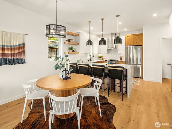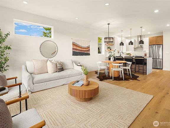 Modern design, thoughtful details, and a coveted Wallingford address—this new construction by Ecoworks Homes showcases quality on every level. A bright, open layout with floor-to-ceiling windows and warm contemporary finishes creates an inviting atmosphere. Chef’s kitchen is appointed w/ stainless appliances, custom cabinetry, and a peninsula island ideal for entertaining. Entry level offers two spacious bedrooms and a full bath, perfect for guests or a home office. Upstairs, retreat to a luxurious primary suite with spa-inspired bath and a generous laundry room. A rooftop deck with mountain and city views! Fully fenced yard with patio + designated EV parking space. All just a short walk to Gas Works Park, restaurants, and local favorites!