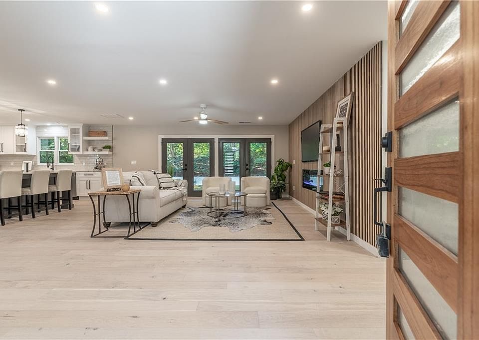 Gorgeous totally renovated ranch just completed. Fresh and ready for you to move right in! You will be wowed from the moment you access the new driveway and walk up to the new wide front porch and through the beautiful double front doors. Entertaining is easy with open concept living featuring an all new, fantastic dream kitchen boasting an enormous island seating for eight, built in microwave drawer, 2 pop up receptacles with wireless phone charging. Prepare gourmet meals with your new 48-inch, 8 burner gas range with griddle attachment. Abundance of cabinets, floating shelves PLUS large butler's pantry with even more storage! Enjoy relaxing with your remote control in front of the color changing electric fireplace that also heats the room. Easily hang any size tv on the new acoustic oak feature wall with receptacle already in place. Two sets of French doors open to the brick patio and low maintenance private, fenced backyard that offers even more entertaining space and a wonderful flow. New French oak engineered flooring throughout the home for a light and bright effect that will look fantastic with any style and color of your furniture. Each of the 3 bedrooms has its own professionally designed brand new bathroom. Prepare to be even more wowed by the stunning master featuring his and her closets, French doors to the backyard patio and a dream come true bathroom! Oversized gorgeous shower has a 20-inch center rain head plus 6 body sprayers, a bench with a hand sprayer. A soaker tub with window view of the backyard. Serenity at its best! In addition to all of the beautiful designer touches in this home you will be happy to know that there are many more new items here including the windows, roof, hvac, doors, hardware, trim and lighting. The location is prime for all of your needs. You have the option to join the Dunwoody North Driving club with swim and tennis. A big bonus is Brook Run Park featuring everything you could want. It spans over 100 acres and includes a dog park, playgrounds, trails, a community run garden, picnic spaces and festivals throughout the year. Also convenient to churches, synagogues and I -285.