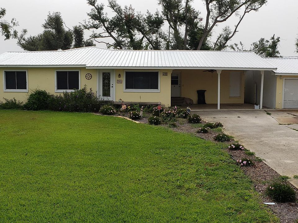 For comp purposes only. Home has metal roof. One bath updated, Master has new tiled shower. Dated cabinets in Master Bath and kitchen. Hard wood floors and carpet in the large living area with fireplace. Large screened in side/back porch. 1400 sq ft detached garage. Covered carport attached to home. Stucco was finished on the side of home before closing. Smooth finish and new exterior paint. Large shed outback.