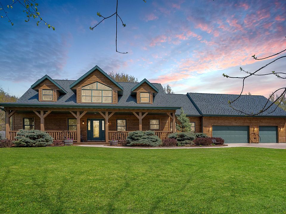 This home is nestled on 2.33+/- acres. As you approach the home the covered porch is sure to please to sit and relax. Great rm has cathedral ceilings, a wall on windows with views of your wooded fenced in yard & wood fireplace with stone from floor to ceiling. Kitchen features snack bar area and full appliance pkg and adjacent dining area. Primary bedrm is on the main floor with primary bath with dual sinks, whirlpool tub, walk in shower & walk in closet. Office area off the foyer. Four season rm with concrete floor, half bath and laundry rm complete the main fl. Upstairs is a loft area overlooking the great rm. Both bedrms upstairs offer their own bathrm and walk in closets. LL is finished with a bar area, game area, family rm, full bath and a huge 4th bedrm.