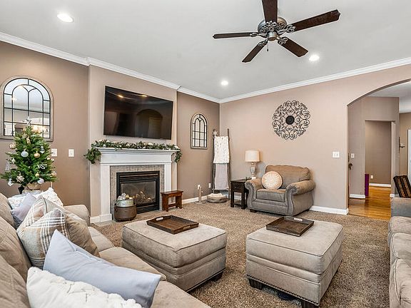 - Features: Fireplace(s), Carpet Flooring, Ceiling Fan(s), Recessed Lighting