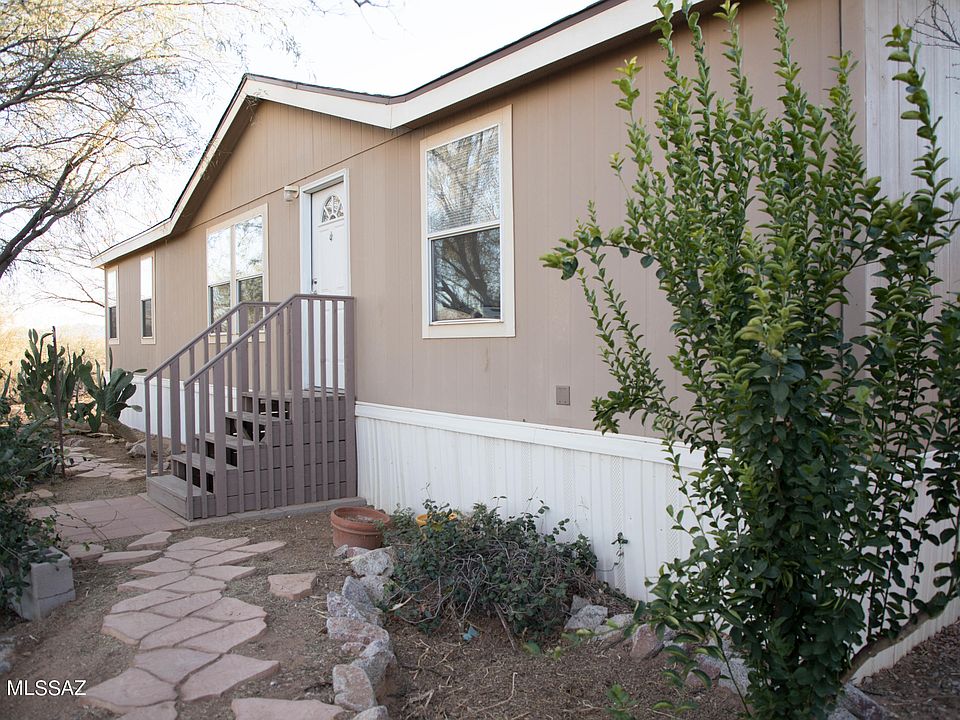 * First time on the market! This 3-bdrm 2 bath home on 4.94acres is perfect for privacy, star gazing, small scale farming/gardening, and animal husbandry of any sort. The property has fruit and olive tress and wildlife crosses the property. The adjacent vacant 4.86 acre lot to the east is included. The home has a private well with 2,000-gallon capacity storage tank. There is an irrigation system for the garden and future greenhouse area has connections for water harvesting backup. 2.5 acres of the property is fenced and swaled for rainwater harvesting. The property also features an open-air workshop with electrical; a 16'x12' concrete pad with high-capacity circuit for future workshop or office; an open-air multi-purpose ramada and insulated Tuff shed with AC, lighting, & outlets.