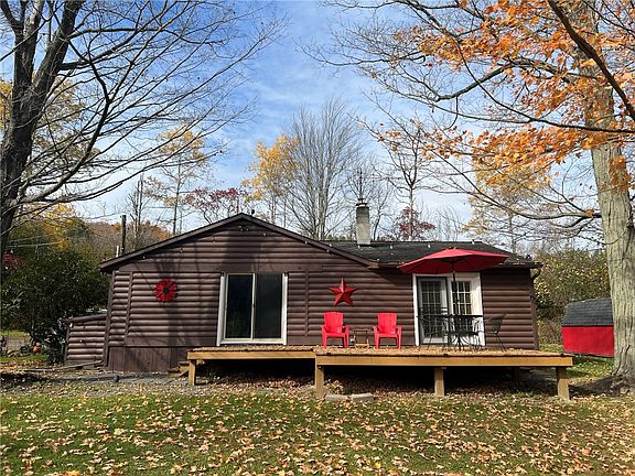 Don’t miss out on this Charming Cabin Retreat! Enjoy this 3+ acre ranch nestled in the woods with 2 bedrooms and 1 bath. Attached to the home you will find a 1 car garage and workshop. Recently remodeled with new flooring, brand new bathroom, new deck, patio and more! Take advantage of the 3 outbuildings for storage and a spacious backyard for outdoor activities! Use this for a private getaway or furnish for an AirBnB. Within close proximity to Watkins Glen, Dundee and Penn Yan.
