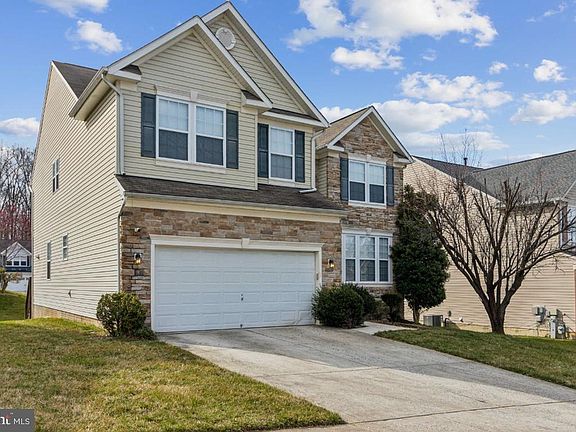 Nestled in a serene enclave, welcome to a spacious haven that stands out in the peaceful Villages of Winterset community. Prepare to be charmed as you're greeted by the elegant stone facade, beckoning you into a world of comfort and tranquility in the largest model on the street. Step through the 2-story foyer and feel immediately embraced by the warmth of this inviting abode. The main level, complete with hardwood floors, unfolds with grace, offering practical yet elegant spaces including a formal living area, a dining room perfect for hosting gatherings, and a conveniently placed office for those who work from home, that could easily be a 5th bedroom if needed. Ease into relaxation in the expansive 2-story family room, bathed in natural sunlight and with a charming fireplace, seamlessly connected to a gourmet kitchen that's as functional as it is stylish. Stainless steel appliances, sleek granite countertops, and a versatile island beckon culinary adventures and casual dining alike. Retreat upstairs one of two ways on the split staircase, to the spacious primary bedroom. A sanctuary offering 2 walk-in closets and an attached bath boasting both a luxurious soaking tub and a rejuvenating shower, promising blissful moments at day's end. 3 more generous bedrooms complete the picture. Descend to the finished basement, a haven of versatility offering the potential for another bedroom or a home gym, accompanied by a full bath and a convenient walkout, ensuring convenience and comfort at every turn. LOCATION, LOCATION. Close to the schools, plenty of convenient shopping and even all those big stores less than a mile away- who doesn’t love a Cosco just around the corner. Light rail and the Ravens Training Facility within 2 miles too. With its abundant living spaces and thoughtful amenities, this home eagerly awaits your exploration, promising a lifestyle of comfort and ease amidst its inviting embrace.