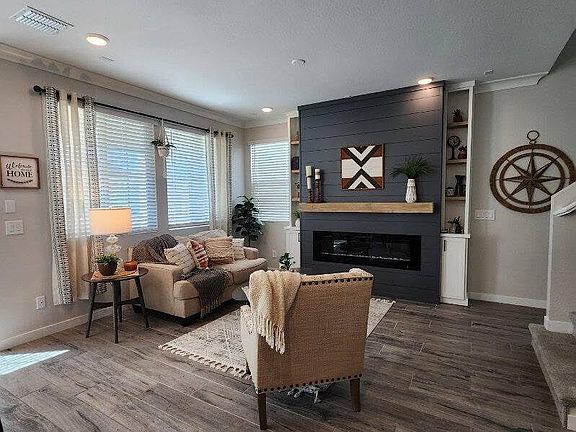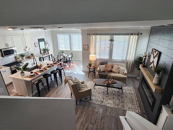 PRICE IMPROVEMENT! Better than New in the highly sought-after Eastmark community. This beautiful home is full of upgrades and ready to move in. Enjoy the patio with a fully landscaped backyard including fabulous synthetic grass and pavers. Benton white 42'' upper white kitchen cabinets with beautiful hardware, and wood look tile planks. Epoxy garage floor, tankless water heater, water softener, reverse osmosis, crown molding, quartz countertops, built-in entertainment center with gorgeous fireplace and storage, automated shade, and keyless entry just to name a few of the stunning upgrades. This 3 bedroom 2.5 bath is perfect and truly better than new. Ready for you to make it your home.