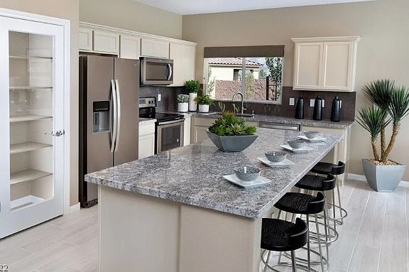 May Completion! Plan 2 in Valencia at Mountain Falls is a beautifully designed single story floor plan that features 3 bedrooms, 2 bathrooms, and 1,747 square feet of living space. The foyer takes you directly to the gathering room and kitchen area, which provides ample space for cooking all your favorite meals while enjoying the views to the covered outdoor living and backyard – perfect for entertaining family and friends! Two secondary bedrooms are on the opposite side of the foyer from the primary bedroom to create privacy and enjoy the wonderful natural lighting, a walk-in shower, dual sinks, and large walk-in closet. Homeowners in Mountain Falls can take advantage of the resident’s facility consisting of multiple swimming pools, spa, workout rooms, public golf course, and so much More! Structural options include: covered patio and 12’ center meet sliding glass door at the gathering room and an 8’ entry door.