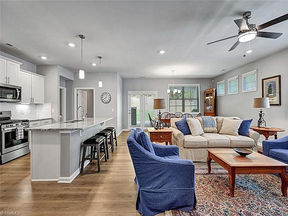 Welcome to This Beautiful Better Than New Home, with a desirable open floor plan and split bedroom design. Your security system will give you the ultimate in flexibility with remote access. You will notice that the front, back porch and patio have upgraded finishes on all concrete surfaces. The garage floor also has an epoxy finish and additional motion lights, lovely neutral décor with fans and upgraded lighting have made this home extra special. Your rear yard provides a wonderful view of wooded privacy. All your yard maintenance is provided by the HOA giving you plenty of time to enjoy the pool, clubhouse, walking trails and pickleball.