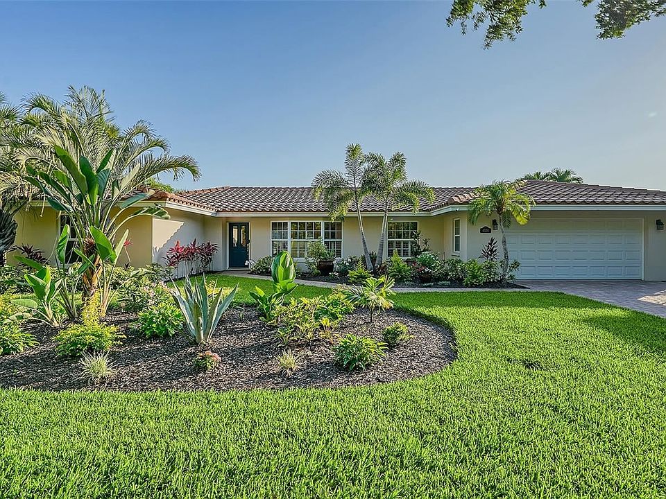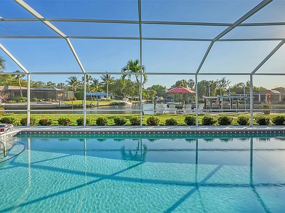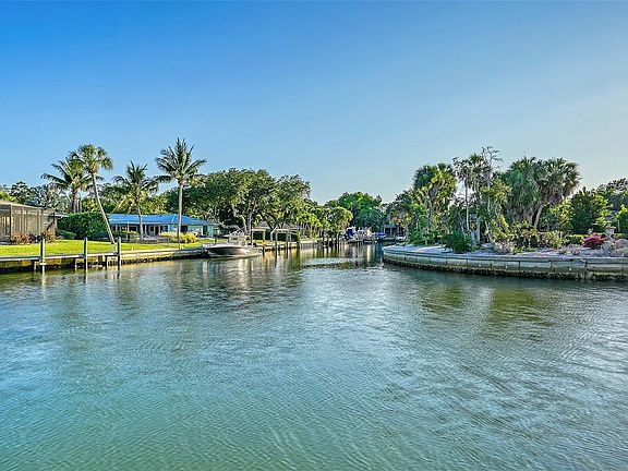 Come see this beautiful light-filled canal front home in a quiet neighborhood of Siesta Key. This well-designed flexible floorplan comprising of four bedrooms plus a den is currently used as a 3 bed, 2 office space. The second bedroom has its own entrance so you can easily create an in-law suite if needed. The light and bright primary suite is split from the other rooms. The lot is deep and lushly landscaped and the screened pool cage is nicely proportioned. The heated saltwater pool is huge - approx. 40 x 16 - and there is plenty of covered and open deck space for lounging and dining. This is an excellent option for boaters - 95 feet of seawall with a 10,000lb boat lift and mooring for up to a 45 ft. cabin cruiser right in your backyard! It is a short 3-minute cruise to Sarasota Bay and 10 minutes to the Gulf of Mexico. If you are not a boater but love to sit and watch the world go by, you will appreciate the fact that there are no neighbors directly across the canal so you can enjoy a wide-open view of the waterway. The house has been recently updated with beautiful luxury vinyl plank flooring throughout and stylish quartz countertops and backsplash to refresh the open-concept kitchen with island and breakfast bar. Tucked away on a quiet, dead-end street yet just a short bike ride from the beach and the lively activities of Siesta Key Village, this prime location offers convenient access to both the north and south bridges. Whether you're a full-time resident, seeking a second home, or looking for a seasonal investment property, this well-maintained, beautiful waterfront home will surely meet your needs!