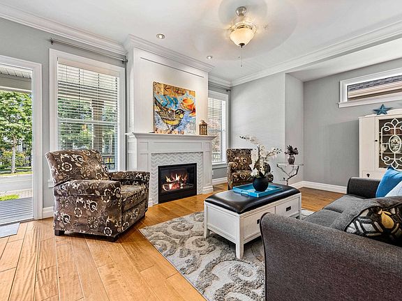 Beautiful 1/2 duplex w/basement located in desirable Garrison neighbourhood! The home boasts hardwood flooring, A/C & elegant crown molding. The kitchen has granite countertops, gas stove & lrg pantry & the living room features cozy fireplace w/custom tile work. Upstairs the spacious primary bdrm offers a 5pcs ensuite w/soaker tub & double sinks! There are 2 more nice size bdrms & full bthrm. The basement has been professionally finished & provides a versatile area w/a built in bar, plus additional bdrm & full bathrm. Enjoy the professionally landscaped, private backyard w/cover patio, wired for hot tub & natural gas outlet, and has access to the detached single car garage w/bonus storage w/pulldown stairs! Walking distance to all levels of schools, shopping & recreation!
