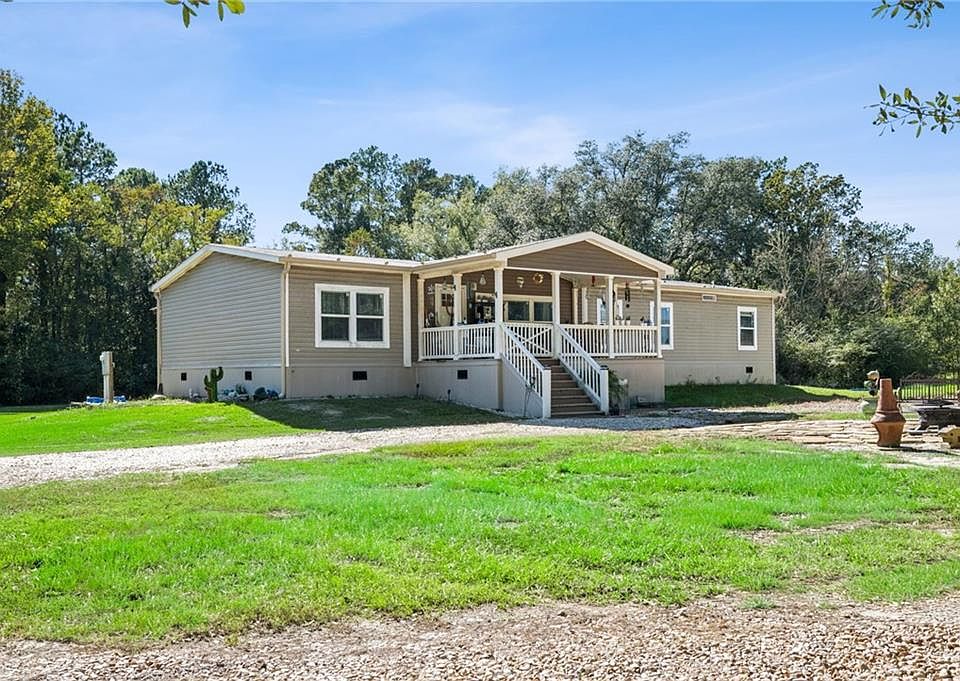 Come see this beauty tucked away on 2.7 acres with a pond. Over 2,000 sqft of living space in this beautiful 4 bedroom, 2 bath home. Open floor plan with large kitchen looking into the living and dining areas. Stainless appliances (Refrigerator & Washer/Dryer included). Primary suite with walk in closet, soaking tub, and located on the opposite side of the home as the other 3 bedrooms for added privacy. Large den also located on opposite side of the home. Added front deck and larger rear deck for entertaining. Sauna and hot tub to stay! Detached large carport for cars, RV or boat storage. Home is FHA, RD, and VA compliant. Located right off of Hwy's 190 & 445, and just minutes to I-12. Book your showing today!