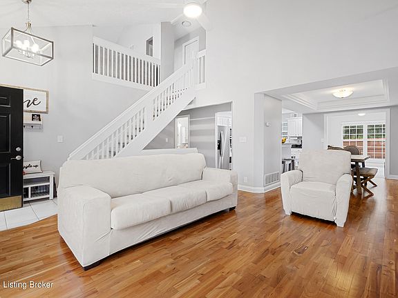 Prepare to fall in love with this stunning 3 bedroom, 2 bath home with an attached garage and privacy fenced back yard! You will enter the home through an attractive stone archway into the spacious open floor plan that begins with the living room. This area offers a soaring vaulted ceiling with large windows allowing natural light to fill the room. Relax by the cozy fireplace flanked by recessed shelves with accent lighting. Make your way to the dining area that boasts a decorative tray ceiling and is open to the kitchen allowing you to effortlessly interact with guests. The breakfast bar countertop makes the perfect place for quick meals or to simply use for additional seating. Just off the dining area you will have a bright, cheerful sunroom with a vaulted ceiling and glass doors that lead to a multi-level deck, the perfect place to enjoy the outdoors. You will love the convenience of the first floor bedroom that is located near the first floor full bath with a shower/tub combo. Upstairs there is a spacious second living area with a vaulted ceiling and large arched window that provides an abundance of natural light. The primary bedroom is truly a retreat boasting a vaulted ceiling, remodeled en suite bathroom with a double vanity and double shower, and a huge walk-in closet! There is another generously sized bedroom rounding out the upstairs rooms. The unfinished basement allows room for lots of storage or the opportunity to expand the finished living space. The seller had all of the hardwood floors stripped, sanded, and refinished and added new flooring in both bathrooms and the laundry room. The furnace, AC, and appliances in the kitchen are only 1 year old and remain with the home. The ductwork has been professionally cleaned and the home has a radon mitigation system in place. Schedule a showing today to make this amazing house your new dream home!