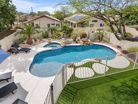 The home also features new exterior paint, a new roof, and recently replaced underlayment. In the expansive backyard, enjoy stunning south-facing views, synthetic grass, a heated, saltwater pool and spa with new Pentair pool system, an outdoor plumbed in shower, and beautiful, low maintenance desert landscaping. New renovated cool decking and an acid washed pool round out this list of recent enhancements. The quiet, interior location is just a 1/2 block from the nearest trail system and just minutes from the 101 and 51 with unbeatable shopping, dining and entertainment. This home exudes pride of ownership and is a must see!