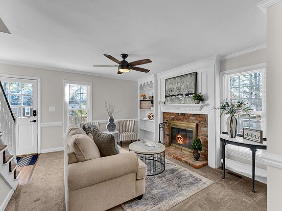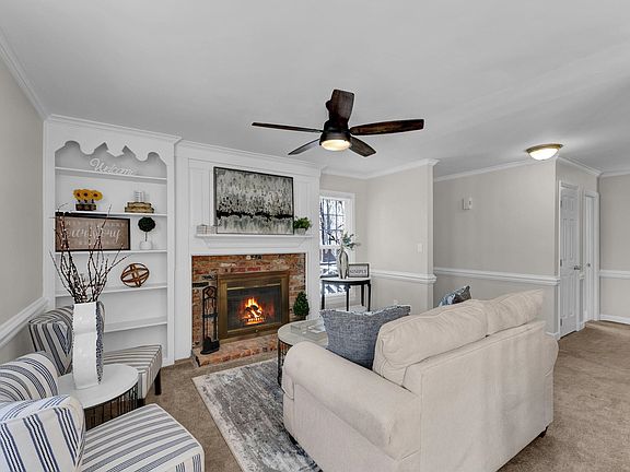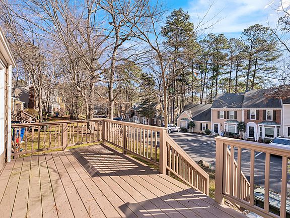 END UNIT TOWNHOME IN DESIRABLE LOCATION! 1st floor primary suite + another 1st floor bedroom. 1 bedroom + bonus with closet upstairs (could be a 4th bedroom) Family room with brick fireplace & built in bookshelves. Smooth ceilings & lots of trim work on the 1st floor. Kitchen with granite counters, crown molding & chair rail. Refrigerator, washer & dryer included. Oversized deck. Community pool & tennis! Only minutes fro restaurants & shopping. 10 min to North Hills - 20 min to downtown Raleigh