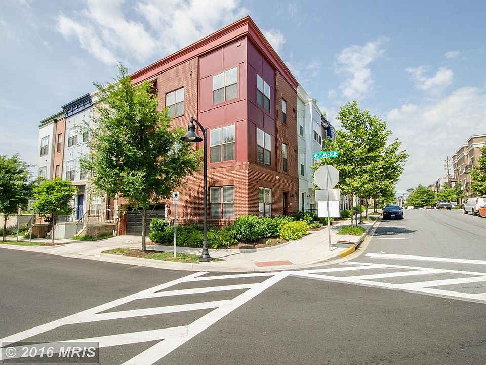 Beautiful end unit townhouse in the Arts District of Hyattsville. Open 1st floor boasts gleaming wood floors, gas fireplace, SS appliances, granite counters, marble backsplash & streaming sunlight. Upstairs Owner's suite with walk-in closet and posh bath, two add'l bedrooms and a full bath. LL offers a 4th bedroom and laundry area. Enjoy spectacular views from the roof top deck. Two car garage.