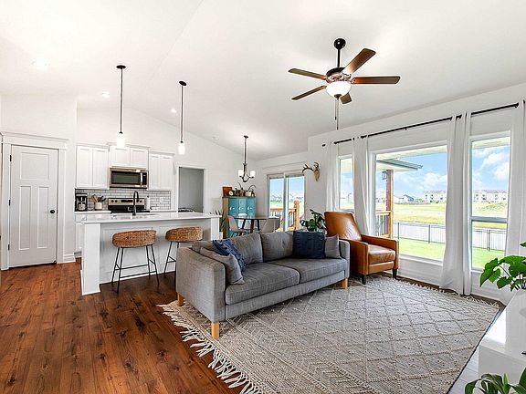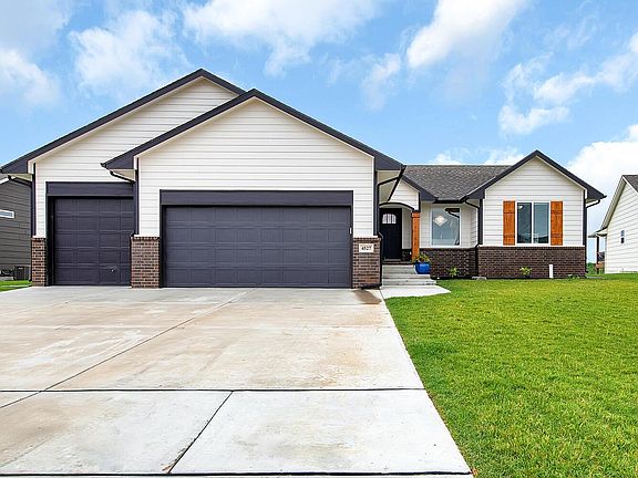 We have the perfect home for you....Why wait to build when this Beauty is BETTER THAN NEW!! You know what they say Location, Location, Location....this home sits on a Cul-De-Sac lot with water views, plus located in the Maize School District. You will fall in love from the minute you pull into the driveway....Gorgeous Curb appeal which gives you a taste of what to expect inside!! Once inside, take note of the gorgeous luxury vinyl flooring and the clean white walls and trim, making the home feel so open and inviting. The Kitchen opens to the living room and dining room space with a huge picture window allowing for tons of natural light. A split floorplan features the Master suite with a master bathroom and closet that won't disappoint. Then across the home are 2 additional bedrooms and a full guest bathroom. Owners have installed blinds that are perfectly situated for this home and the sliding glass door was upgraded to have the blinds inside the glass. Heading downstairs, (this space is unfinished).....But don't miss checking it out!!! 2 additional bedrooms and a full guest bathroom are all framed out, PLUS a Wet Bar area plumbed (and cabinets already furnished), a nice size family room with views on the water!!!! **BONUS All cabinets and drywall in basement go with the home....making it that much easier for instant equity. Outside, the property is fully landscaped, sprinkler system front and back, plus an irrigation well. Fully fenced back yard with wrought iron fencing to allow for unobstructed views....Plus a large covered deck and perfectly situated lower patio. Make this house, your HOME TODAY.
