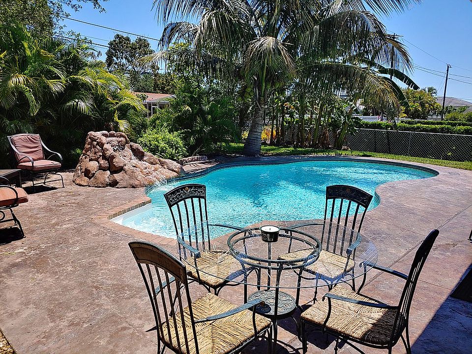 OPEN HOUSE Friday Aug. 5TH 9:30AM - 12PM Due to the high interest level in the property we will hold all offers until Monday Aug 9th. Agents please allow ample time for owner to review. Please submit highest and best. ......................................................................... Completely Renovated Smart Home Everything NEW NEW NEW – NOTHING FOR YOU TO DO COMPLETELY Renovated Executive South Cape Coral Pool Home. TURNKEY VACATION RENTAL! Featuring just over 1500sf, 3/2/1 w/plenty of storage. This home has it all! Custom designed kitchen & bathrooms featuring granite, beautiful tumbled marble back splash, concrete counters, under cabinet lighting, stainless steel appliances, and cabinetry with soft close doors and drawers! Terrazzo floors have been restored to the natural beauty! Surround sound in the media room w/blackout shades. Baths have been fully remodeled from the inside out! Other upgrades include crown molding, new interior doors, some new windows, new whole house underground electric, duct work, blown insulation and so much more! Energy efficient!! Swim in your custom designed heated pool w/waterfall surrounded by stamped concrete and a beautiful fenced back yard. Close to so much including schools, shopping, farmers market, craft fair and all the wonderful things downtown Cape has to offer. Additions & Improvements New in 2015/2016 New in 2019 *Hot water Heater * AC and Air Handler *Blown attic insulation *Complete Re-pipe of supply lines New in 2021 *Partial re-pipe drain lines *Roof *Pool & waterfall *Pool Heater *Irrigation system *Smart Water Heater, Pool Heater, Pool *Front Patio Pump & Thermostat *Concrete kitchen counters *Granite Bathroom Counters Quiet family friendly neighborhood with easy access to get to Fort Myers. This is a great home for anyone, family, first time buyer or seasonal rental, vacation rental! Fully furnished option available. Home is currently a fully stocked vacation rental. CALL to schedule a showing. PLEASE DO NOT DISTURB GUESTS Buyers agents WELCOME will cooperate!