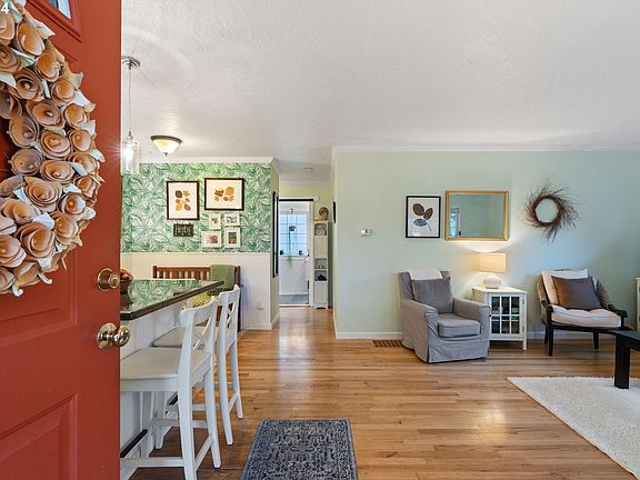 You’ll be smitten with this sweet two bedroom ranch in vibrant Woodstock. The home sits on a corner lot and has been meticulously cared for over the years. Incredible garden paradise and shed in the side yard with plenty of room to make it your own. Inside, natural light showcases the warmth of the hardwood floors, creating a cozy and inviting feel. The open, updated kitchen has granite counters, tile floor, and a fun wallpapered accent wall fills the room with Palm Springs vibes. The cute remodeled bathroom has a new shower and tile floor. Plus, newer windows for year-round efficiency. Perfect Portland location near all of the fabulous dining on Woodstock, local library, multiple grocery stores, Woodstock Park, Crystal Springs Rhododendron Park, Reed College, and more! [Home Energy Score = 3. HES Report at https://rpt.greenbuildingregistry.com/hes/OR10233974]
