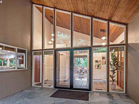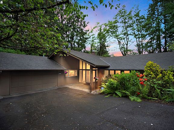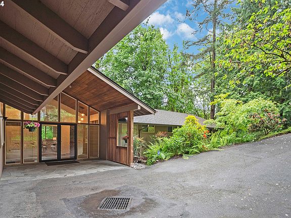 An exceptional mid-century home designed by the renowned architect, Allison Dean. Nestled into the trees the banks of windows throughout bring the outside in creating serenity and peace. Spacious living spaces flow seamlessly from one room to the next and the high and vaulted ceilings give the feel of privacy and space. Begin with the entry's dynamic two-story windows and original woodwork, and stepping into the large living room with stunning built ins and walnut walled fireplace every aspect of this home is warm + inviting. Off the living room are french doors leading to the dining room and a slider to the Trex deck and views of the forested yard. The kitchen was remodeled by Neil Kelly and outfitted with high-end appliances custom cabinets and Corian counters. The attached family room is made cozier by the fireplace and includes a TV mount, A/V cabinets, and 5.1 surround sound installation. A backdoor leads to another Trex deck, and easy garage access. Stunning dining room with hardwood floors and forested views. The main floor primary suite includes a large bathroom w/ jacuzzi tub, glass block shower, custom cabinets and granite counters and a large walk-in closet. 2 additional bedrooms with hardwood flooring and a large laundry room complete the main floor and allow for main level living. Ample storage throughout is a signature feature of Dean's mid-century design. Downstairs are 2 additional family rooms one complete with a fireplace and access to the yard and covered patio. 2 more bedrooms down a corridor and a full bathroom round out the functional floorplan. The home also has a 24KW Generac full house gas generator, a newer (2016) roof, updated PEX plumbing and updated Milgard windows. Located in unincorporated Multnomah County just minutes from the tech corridor. Exceptional schools, proximity to shops + restaurants in Portland's Downtown / Pearl / NW Districts and convenient access to westside suburbs. This home has it all!