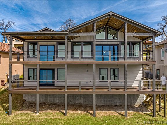 This gorgeous brand new home opens up to wide views of Grand Lake. 2 living areas. 5 bedrooms, 5.5 baths. One laundry room downstairs; washer and dryer connection also in main bathroom. Other features include Trex decking, maple solid wood cabinets, quartz countertops, natural gas oven/range with air frying feature, gas hook-up on deck for grill, high efficiency AC/furnace, rigid core flooring, foam insulation. Neighborhood swimming pool. This gorgeous home will draw you in with the sweeping views of Grand Lake, stunning light fixtures, beautiful tile, and space for family and friends. Great floor plan for entertaining! Buyer to verify schools. 36' slip in community dock included rent free for one year. Owner/Agent