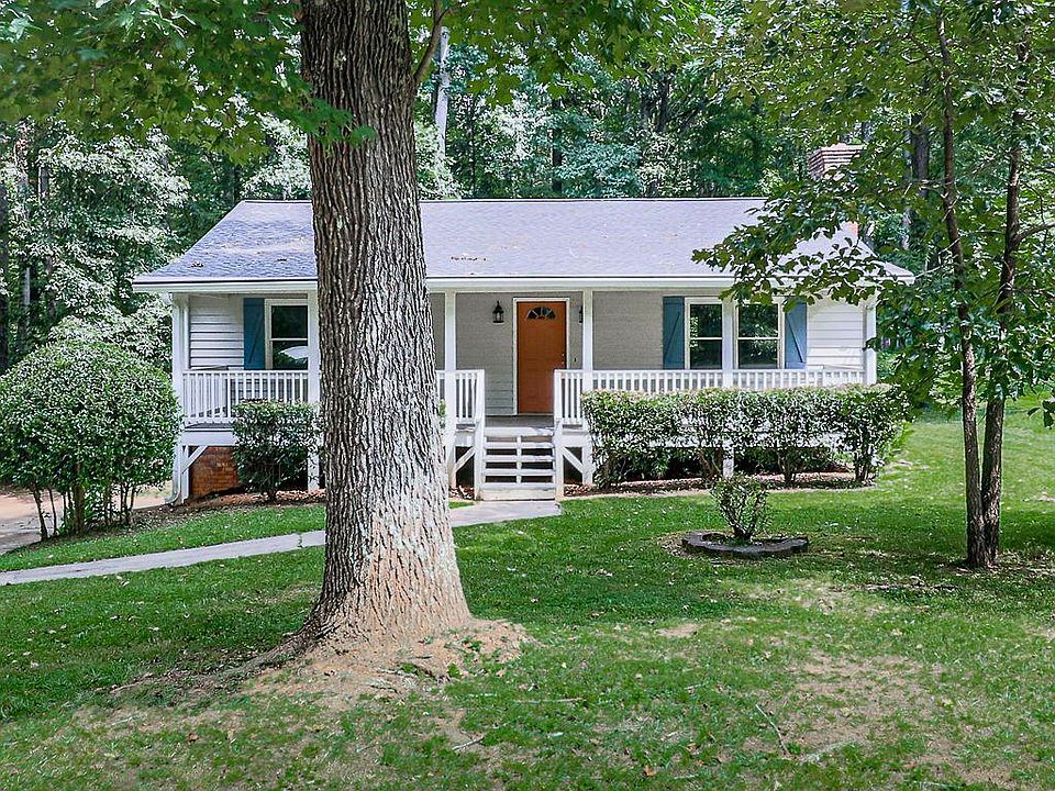 A Golden Opportunity! Adorable! Rocking Chair Front Porch with Curb Appeal Galore! Three bedrooms, 2 bathrooms Ranch Home on a full basement nestled in the Creek Wood subdivision. No HOA and no rental restrictions! Newer 2020 Roof, HVAC, Water Heater and Appliances. Main floor is open concept with plenty of room for a kitchen island. Living room has hardwood floors and a masonry fireplace for the cooler weather that's around the corner. Enjoy the fall evenings entertaining friends and grilling with the wind blowing on the back deck! Come make this one yours! DISCLOSURE: Leaky basement. Home has been evaluated by Engineered Solutions of Georgia and seller will provide estimate for repairs. Conveniently situated near parks, shopping centers, restaurants, and major highways, this home offers effortless commuting options. Don't let this incredible opportunity slip away - it is within the highly regarded Harrison High School District! CASH ONLY!