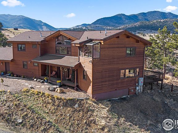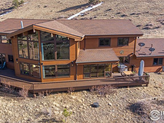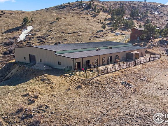Nestled within the picturesque foothills, this property is a luxurious mountain retreat offering an unparalleled living experience. The private drive enters from Golden Gate Canyon Rd & provides the private ambiance of rustic mountain living while only minutes from town. Entering the home, you're captivated by the warm & inviting atmosphere. The interior boasts a sophisticated design that seamlessly blends modern elegance w/rustic charm. The spacious living areas are flooded w/ natural light & offer stunning views of the surrounding valley. The living room features a stone fireplace, vaulted ceilings w/exposed wooden beams, & large windows that frame the breathtaking scenery. The gourmet kitchen is a chef's dream, w/ top-of-the-line appliances, custom cabinetry, & a spacious island that provides ample space for meal prep & entertaining whether inside or on the wrap around deck. The dining room is ideal for intimate gatherings or grand dinner parties. The master suite is an oasis, w/views from each window overlooking the mountains, & a spa-like en suite bathroom that features an atrium style soaking tub, a walk-in shower, & dual vanities. The bedrooms are equally impressive, ea w/ their own stunning views. A spacious loft separates the primary bedroom from the others offering privacy for family & guests alike. The 22,000 sqft equestrian facility features a studio apartment, 6 stalls w/automatic waterers & walkouts, a wash stall w/ heated water or cold water therapy ability, 2 additional stalls for storage/horses, a tack room & feed prep. The indoor riding arena is 110'x150' w/ height for jumping. The entire property is complete w/ perimeter fencing. Several areas are fenced for alternating pasture. Located on 36 acres of pristine mountain landscape, Sheep Patch Rd is an incredible retreat for those who value privacy, tranquility, & luxury living. This is a rare opportunity to own a truly exceptional property in one of Colorado's most sought-after locations.