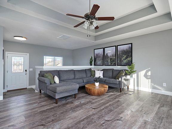 Don't miss this great walk-out basement home that features: 4 bedroom, 2.5 bath, 3 car garage with a split bedroom floor plan. Large kitchen with tile backsplash, granite countertops, custom cabinets, breakfast bar & stainless steel Whirlpool appliances. Refrigerator stays! The master bedroom en-suite has tray ceiling, large bathroom with double vanities, walk-in shower and his & hers walk-in closets. 2 large living areas and LOTS of storage! Nice neutral gray color theme throughout. Energy Efficient lighting LED Bulbs. High efficiency heat and air. Maintenance free exterior with stone/concrete siding on front and vinyl siding & covered deck and covered patio. Fully privacy fenced.