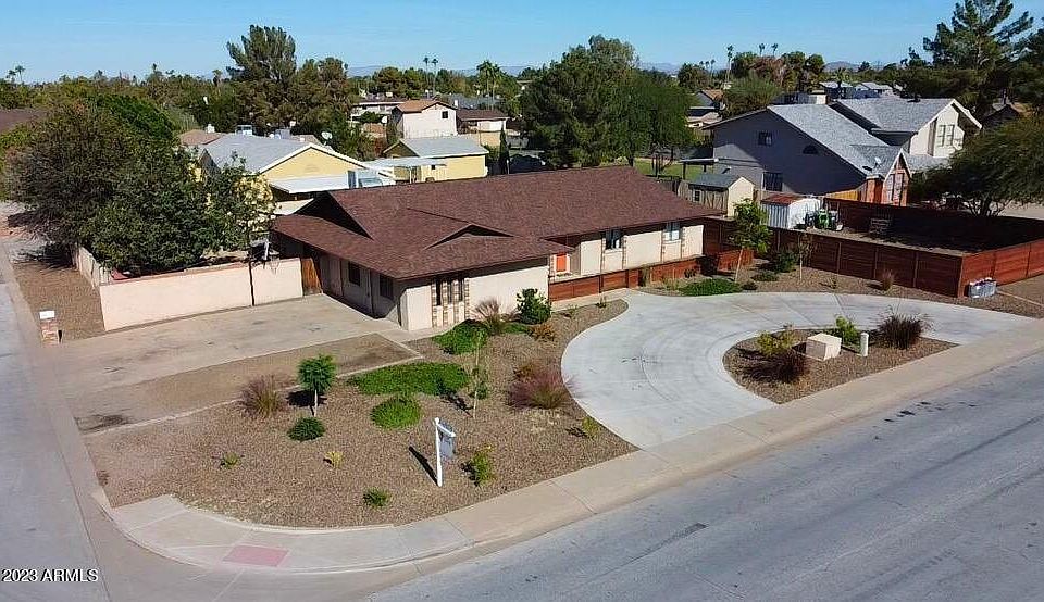 Unique & distinctive 5 bedroom home on a 17,000 sq. ft. homesite. Completely remodeled from floor to ceiling: New kitchen, new bathrooms, new tile flooring throughout entire home, new ceiling beams, new paint, new doors/hardware/fans/lights/etc. This home was thoroughly modernized and shows absolutely exceptional! Garage has been converted into 2 extra rooms for a total of 5 bedrooms. Backyard has oversized covered patio, large mature trees, steel fencing/20 ft. steel side gate to park as many toys as you need. All new landscaping out front. Corner homesite w/ plenty of parking. Great location close to schools, shopping, and just a few miles away from the I-17. No HOA and low property taxes. Owner has taken meticulous care of property, inside and out and it shows...
