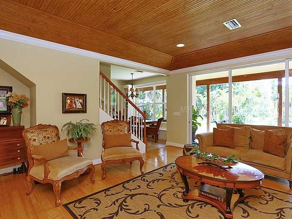 Nestled on 1.6 serene acres on the Braden River, this 5 bedroom/3.5 bath custom-built Lee Wetherington home offers all the amenities for today's family. Built in 2007, the first floor includes a beautriful chef's kitchen with granite countertops, a family room with gorgeous bamboo floors, a yellow pine tonque and groove ceiling, formal dining room and den, along with the master bedroom that has spectacular views of the water and outdoors. The 2nd floor features 4 bedrooms (all with walk-in closets), 2 baths, and 2nd laundry area - all perfectly situated around the bonus room. The outdoor area includes a covered patio, 105 feet of riverfront and a large pool and spa with pebble tec surface. The 2 car detached garage has oversized doors and an unfinished 2nd floor-just waiting to become an office or game room. In addition, the adjacent 1.6 acres can be purchased separately. Your dream of country, waterfront living with no deed restrictions (in the city) just came true! NO FLOOD INSURANCE REQUIRED....