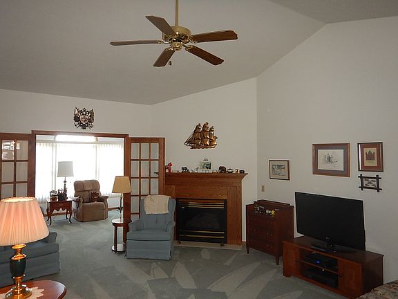 One floor condo living at it's best! Open floor plan living room with vaulted ceilings, gas log fireplace, french doors lead to a sun room with a view of pond and walking paths, Master bedroom with master bath and large walk in closet. Galley style kitchen with Corian Counter tops, 1st floor laundry with washer and dryer. Spacious basement has finished 3rd bedroom and full bath.