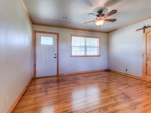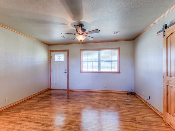 Minutes from Bartlesville, this ranch style home is on 10ac m/l w/a pond, fenced parameter with barb wire. Pole entry and pole fencing at the front of the home, chain link creates a separate back lawn. Mature trees and exceptional grass. Additional water tap for a garden & or future barn location. The home has been remodeled top to bottom 6yrs ago, including heat & air and metal roof. Gleaming hardwoods floors, wood trim, doors & cabinetry throughout. 2nd living w/FP could be 2nd bedroom.