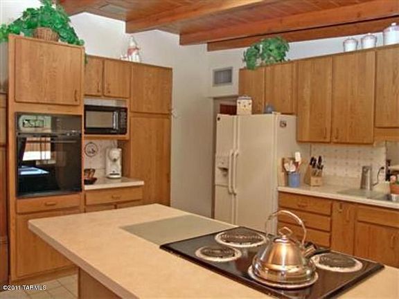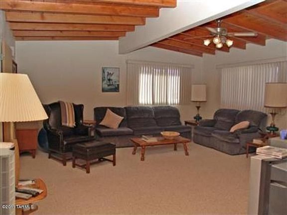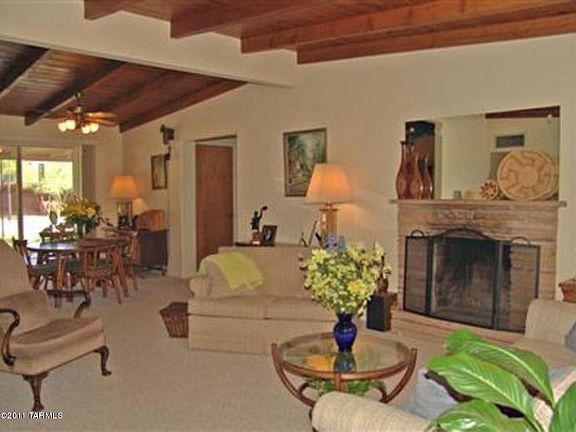 For more information on this property, contact the Listing Agent, Gwen Hucko at (520) 241-6040 or GwenHucko@comcast.net. Beautiful home w/ character: Vaulted wood beam ceilings throughout; flagstone fireplace, open, light floorplan. Huge yard with North Mtn Views! Large covered patio too. Ceiling fans, wrought iron doors and 2.5 baths. Large Family Room, Separate laundry room- convenient to shopping, banks, medical, etc. Great N-S orientation. (New Trane Heat Pump in 2008)New roof in 2007.Quick move-in avail.